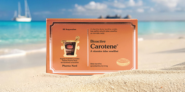Bioactive Carotene satur A vitamīnu (beta-karotīna veidā), kurš palīdz uzturēt ādas un gļotādu veselību, kā arī normālu redzi. Bioactive Carotene kapsulas ieteicams sākt lietot divas nedēļas pirms saules pelžu uzsākšanas (kā arī pirms došanās uz siltajām zemēm) un solārija apmeklējuma un turpināt lietot visu sauļošanās sezonas laiku.